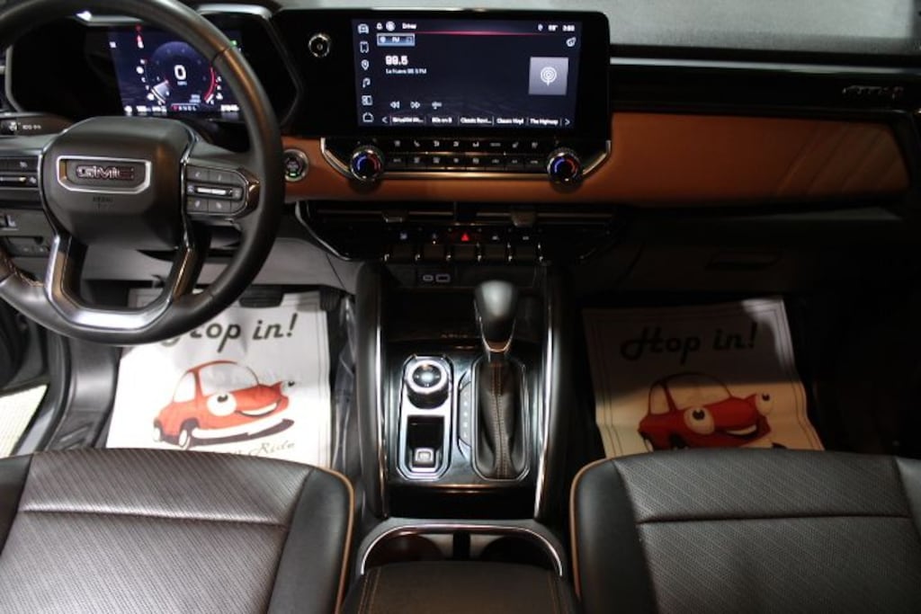 THIS VEHICLE COMES WITH THE FOLLOWING FEATURES AND OPTIONS : ** AT4 Premium Package (6-Way Power Passenger Seat Adjuster, Driver & Front Passenger Ventilated Seats, Driver Memory, Driver Seatback Map Pocket, Heated Steering Wheel, Perforated Leather-Appointed Seat Trim, Power Passenger Lumbar Control Seat Adjuster, Rear Center Fold-Down Armrest w/2 Cupholders, and Wireless Charging), Canyon Safety Plus Package (Blind Zone Steering Assist, Rear Cross Traffic Braking, and Ultrasonic Rear Park Assist), Preferred Equipment Group 4SG (120-Volt Bed Mounted Power Outlet, 2 Rear USB Ports in Center Console (Charge-Only), 8-Way Power Driver Seat Adjuster, Automatic Emergency Braking, Automatic Locking Rear Differential, Canyon Pro Safety, Driver & Front Passenger Illuminated Visors, Dual-Zone Automatic Air Conditioning, EZ-Lift & Lower Tailgate, Following Distance Indicator, Forward Collision Alert, Front LED Fog Lamps, Front Pedestrian & Bicyclist Braking, Heated Driver & Front Passenger Seats, Heated Power-Adjustable Outside Mirrors, Inside Rear-View Auto-Dimming Mirror, IntelliBeam Automatic High Beam On/Off, Interior Overhead Courtesy Light w/Dual Reading Lamp, Lane Keep Assist w/Lane Departure Warning, Manual Rear-Sliding Window, MultiStow Tailgate, Power Driver Lumbar Control Seat Adjuster, Rear of Console 120-Volt Power Outlet, Rear-Window Electric Defogger, Remote Vehicle Starter System, Tailgate Keyed Cylinder Lock, and Tilt & Telescopic Manual Steering Column), ProGrade Trailering System (Trailering App System), Technology Plus Package (Adaptive Cruise Control, HD Surround Vision, Multicolor 6.3" Diagonal Head-Up Display, and Rear Pedestrian Alert), Trailering Package (Integrated Trailer Brake Controller), 4WD, 2 1st Row USB Charge/Data Ports, 220 Amps Alternator, 3.42 Rear Axle Ratio, 4-Way Manual Front Passenger Seat Adjuster, 4-Wheel Disc Brakes, 6 Speakers, 6-Speaker Audio System Feature, ABS brakes, Air Conditioning, Alloy wheels, AM/FM radio: SiriusXM, Apple CarPlay/Android Auto, Auto High-beam Headlights, Auto-dimming Rear-View mirror, Automatic Stop/Start, Automatic temperature control, Brake assist, Bumpers: body-color, Cloth/CoreTec Seat Trim, Compass, Delay-off headlights, Driver door bin, Driver Mode Selector, Driver vanity mirror, Dual front impact airbags, Dual front side impact airbags, Electronic Stability Control, Front anti-roll bar, Front Bucket Seats, Front Center Armrest, Front dual zone A/C, Front fog lights, Front Passenger Seatback Map Pocket, Front reading lights, Front wheel independent suspension, Heated door mirrors, Heated front seats, Illuminated entry, Low tire pressure warning, Navigation System, Occupant sensing airbag, Outside temperature display, Overhead airbag, Overhead console, Panic alarm, Passenger door bin, Passenger vanity mirror, Power door mirrors, Power driver seat, Power Inner Sliding Glass Sunroof w/Manual Shade, Power steering, Power windows, Radio data system, Radio: 11.3" Diagonal Premium GMC Infotainment Sys, Rear reading lights, Rear step bumper, Rear window defroster, Remote keyless entry, Security system, SiriusXM w/360L, Speed control, Speed-sensing steering, Split folding rear seat, Spray-On Bedliner, Steering wheel mounted audio controls, Stop/Start System Disable Button Engine Control, Tachometer, Telescoping steering wheel, Tilt steering wheel, Traction control, Trip computer, Va