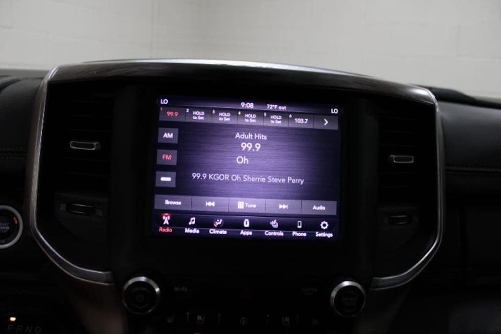 THIS VEHICLE COMES WITH THE FOLLOWING FEATURES AND OPTIONS : ** Bed Utility Group (4 Adjustable Cargo Tie-Down Hooks, Pick-Up Box Lighting, and Spray In Bedliner), Laramie Level 1 Equipment Group (Auto High Beam Headlamp Control, Blind Spot & Cross Path Detection, Foam Bottle Insert (Door Trim Panel), ParkSense Front/Rear Park Assist w/Stop, Rain Sensitive Windshield Wipers, Rear 60/40 Folding Split Recline Seat, Remote Tailgate Release, Single Disc Remote CD Player, and Tailgate Ajar Warning Lamp), Quick Order Package 25H Laramie, #1 Seat Foam Cushion, 10 Speakers, 3 Rear Seat Head Restraints, 3.21 Rear Axle Ratio, 4 Way Front Headrests, 4-Wheel Disc Brakes, 48V Belt Starter Generator, 8.4" Touchscreen Display, ABS brakes, Active Noise Control System, Adjustable pedals, Air Conditioning, Alloy wheels, AM/FM radio: SiriusXM, Apple CarPlay, Apple CarPlay/Android Auto, Audio memory, Auto-dimming door mirrors, Auto-dimming Rear-View mirror, Automatic temperature control, Brake assist, Bumpers: chrome, Compass, Delay-off headlights, Driver door bin, Driver Seat Memory, Driver vanity mirror, Dual front impact airbags, Dual front side impact airbags, Dual Rear Exhaust w/Bright Tips, Electronic Stability Control, Front anti-roll bar, Front Center Armrest w/Storage, Front dual zone A/C, Front fog lights, Front reading lights, Front Seat Back Map Pockets, Front wheel independent suspension, Fully automatic headlights, Garage door transmitter, Google Android Auto, GPS Antenna Input, Heated door mirrors, Heated Front Seats, Heated front seats, Heated Steering Wheel, Heated steering wheel, Illuminated entry, Integrated Center Stack Radio, Leather steering wheel, Leather Trim 40/20/40 Bench Seat, Low tire pressure warning, Memory seat, Occupant sensing airbag, Outside temperature display, Overhead airbag, Overhead console, Panic alarm, ParkView Rear Back-Up Camera, Passenger door bin, Passenger vanity mirror, Pedal memory, Power 4-Way Driver Lumbar Adjust, Power 4-Way Passenger Lumbar Adjust, Power 8-Way Driver & Passenger Seats, Power door mirrors, Power driver seat, Power passenger seat, Power steering, Power windows, Radio data system, Radio: Uconnect 4 w/8.4" Display, Rear anti-roll bar, Rear seat center armrest, Rear step bumper, Rear Wheelhouse Liners, Rear window defroster, Remote keyless entry, Security system, SiriusXM Satellite Radio, Speed control, Split folding rear seat, Steering wheel mounted audio controls, Tachometer, Telescoping steering wheel, Tilt steering wheel, Traction control, Trip computer, Turn signal indicator mirrors, Variably intermittent wipers, Ventilated Front Seats, Ventilated front seats, Voltmeter, and Wheels: 18" x 8" Aluminum Base Painted. Odometer is 33140 miles below market average!