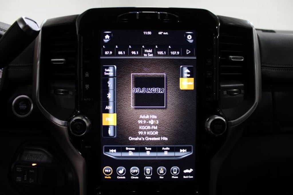 THIS VEHICLE COMES WITH THE FOLLOWING FEATURES AND OPTIONS : ** Chrome Appearance Group (Chrome Belt Moldings, Chrome Flat Wheel-to-Wheel Side Steps, and Chrome Tow Hooks), Laramie Level 1 Equipment Group (2nd Row In Floor Storage Bins, Auto High Beam Headlamp Control, Blind Spot & Cross Path Detection, Exterior Mirrors w/Memory, Foam Bottle Insert (Door Trim Panel), Mirror-Mounted Aux Reverse Lamps, Power Adjustable Convex Aux Mirrors, Power Adjustable Pedals w/Memory, Power Chrome Tow Mirrors w/Convex Spotter & Memory, Radio/Driver Seat/Mirrors/Pedals Memory, Rain Sensitive Windshield Wipers, Remote Tailgate Release, and Ventilated Front Seats), Off Road Package (Front Performance Tuned Shock Absorbers, Hill Descent Control, Off Road Decal, Rear Performance Tuned Shock Absorbers, and Tow Hooks), Protection Group, Quick Order Package 2HH Laramie, 1-Year SiriusXM Guardian Trial, 10 Speakers, 115V Auxiliary Rear Power Outlet, 12" Touchscreen Display, 2 Way Rear Headrest Seat, 20" x 8.0" Polished Aluminum Wheels, 220 Amp Alternator, 3.73 Axle Ratio, 4 Way Front Headrests, 4-Wheel Disc Brakes, 400W Inverter, 5-Year SiriusXM Traffic Service, 5-Year SiriusXM Travel Link Service, 8.4" Touchscreen Display, ABS brakes, Active Noise Control System, Adjustable pedals, Air Conditioning, Alloy wheels, AM/FM radio: SiriusXM, Anti-Spin Differential Rear Axle, Apple CarPlay, Apple CarPlay/Android Auto, Auto-dimming Rear-View mirror, Automatic temperature control, Brake assist, Bumpers: chrome, Center Hub, Clearance Lamps, Compass, Delay-off headlights, Diesel Exhaust Brake, Disassociated Touchscreen Display, Driver door bin, Driver vanity mirror, Dual front impact airbags, Dual front side impact airbags, Electronic Stability Control, Electronically Controlled Throttle, For Details Visit DriveUconnect.com, Front anti-roll bar, Front Center Armrest w/Storage, Front dual zone A/C, Front fog lights, Front reading lights, Front Seat Back Map Pockets, Fully automatic headlights, Garage door transmitter, Google Android Auto, GPS Antenna Input, GPS Navigation, HD Radio, Heated door mirrors, Heated Front Seats, Heated front seats, Heated Steering Wheel, Heated steering wheel, Illuminated entry, Integrated Center Stack Radio, Integrated Voice Command w/Bluetooth, Leather steering wheel, Leather Trim 40/20/40 Bench Seat, Low tire pressure warning, Manufacturer's Statement of Origin, Occupant sensing airbag, Outside temperature display, Overhead airbag, Overhead console, Panic alarm, ParkView Rear Back-Up Camera, Passenger door bin, Passenger vanity mirror, Power 2-Way Driver Lumbar Adjust, Power 2-Way Passenger Lumbar Adjust, Power Adjust 8-Way Driver Seat, Power Adjust 8-Way Front Passenger Seat, Power door mirrors, Power driver seat, Power passenger seat, Power steering, Power Sunroof, Power windows, Radio data system, Radio: Uconnect 12.0 w/Navigation, Radio: Uconnect 4 w/8.4" Display, Radio: Uconnect 4C Nav w/8.4" Display, Rear 60/40 Folding Seat, Rear anti-roll bar, Rear reading lights, Rear seat center armrest, Rear step bumper, Rear window defroster, Remote keyless entry, Security system, SiriusXM Satellite Radio, SiriusXM Traffic Plus, SiriusXM Travel Link, SiriusXM w/360L, Speed control, Split folding rear seat, Spray In Bedliner, Steering wheel mounted audio controls, Tachometer, Tilt steering wheel, Tip Start, Traction control, Trip computer, Turn signal indicator mirrors, USB Host Flip, Variably intermittent wipers, Vendor Painted Cargo