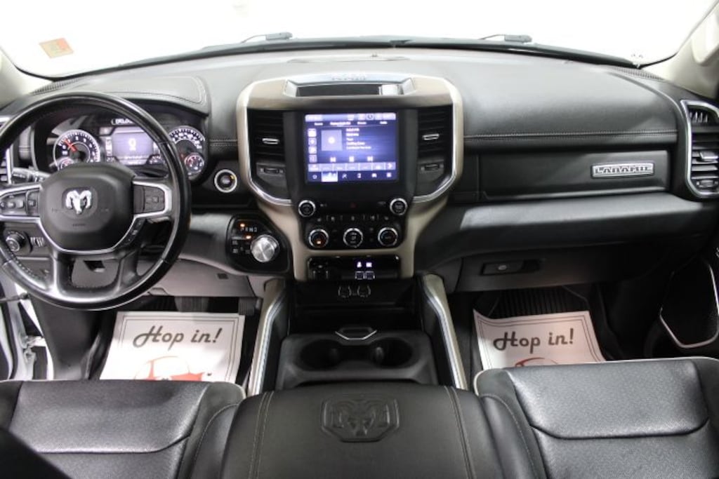THIS VEHICLE COMES WITH THE FOLLOWING FEATURES AND OPTIONS : ** Quick Order Package 25H Laramie, #1 Seat Foam Cushion, 10 Speakers, 2nd Row In Floor Storage Bins, 3 Rear Seat Head Restraints, 3.21 Rear Axle Ratio, 4 Way Front Headrests, 4-Wheel Disc Brakes, 48V Belt Starter Generator, 4G LTE Wi-Fi Hot Spot, 8.4" Touchscreen Display, ABS brakes, Adjustable pedals, Air Conditioning, Alloy wheels, AM/FM radio: SiriusXM, Apple CarPlay, Apple CarPlay/Android Auto, Audio memory, Auto-dimming door mirrors, Auto-Dimming Exterior Driver Mirror, Auto-dimming Rear-View mirror, Automatic temperature control, Brake assist, Bumpers: chrome, Chrome Exterior Mirrors, Compass, Connectivity - US/Canada, Convex Wide-Angle Mirror Insert, Delay-off headlights, Driver door bin, Driver Seat Memory, Driver vanity mirror, Dual front impact airbags, Dual front side impact airbags, Electronic Stability Control, Exterior Mirrors Courtesy Lamps, Exterior Mirrors w/Heating Element, Exterior Mirrors w/Memory, Exterior Mirrors w/Supplemental Signals, For Details, Visit DriveUconnect.com, Front anti-roll bar, Front Center Armrest w/Storage, Front dual zone A/C, Front fog lights, Front License Plate Bracket, Front reading lights, Front Seat Back Map Pockets, Front wheel independent suspension, Fully automatic headlights, Garage door transmitter, Global Telematics Box Module (TBM), Google Android Auto, GPS Antenna Input, Heated door mirrors, Heated Front Seats, Heated front seats, Heated Steering Wheel, Heated steering wheel, Heavy-Duty Engine Cooling, Illuminated entry, Integrated Center Stack Radio, Leather steering wheel, Leather Trim 40/20/40 Bench Seat, Low tire pressure warning, Manufacturer's Statement of Origin, Memory seat, MOPAR Front & Rear Rubber Floor Mats, Occupant sensing airbag, Outside temperature display, Overhead airbag, Overhead console, Panic alarm, ParkView Rear Back-Up Camera, Passenger door bin, Passenger vanity mirror, Pedal memory, Power 2-Way Driver Lumbar Adjust, Power 2-Way Passenger Lumbar Adjust, Power 8-Way Driver & Passenger Seats, Power door mirrors, Power driver seat, Power passenger seat, Power steering, Power windows, Power-Folding Mirrors, Radio data system, Radio: Uconnect 5 W w/8.4" Display, Rear 60/40 Folding Seat, Rear anti-roll bar, Rear seat center armrest, Rear step bumper, Rear window defroster, Remote keyless entry, Security system, SiriusXM Radio Service, Speed control, Split folding rear seat, Steering wheel mounted audio controls, Tachometer, Telescoping steering wheel, Tilt steering wheel, Traction control, Trailer Brake Control, Trip computer, Turn signal indicator mirrors, Variably intermittent wipers, Ventilated Front Seats, Ventilated front seats, Voltmeter, Wheels: 18" x 8" Aluminum Base Painted, and Wheels: 20" x 9" Premium Paint/PolisheD.