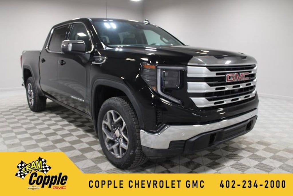 Onyx Black 2026 GMC Sierra 1500 SLE 4WD 10-Speed Automatic EcoTec3 5.3L V8 10-Speed Automatic, 4WD, Jet Black Cloth.