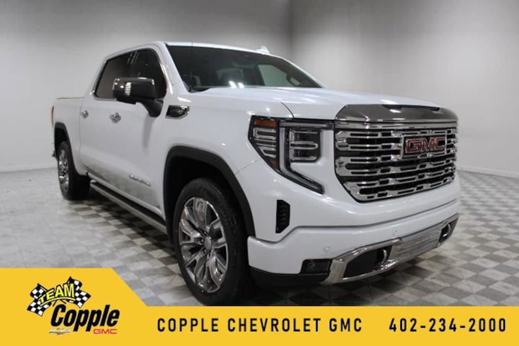 Glacier White Tricoat 2026 GMC Sierra 1500 Denali 4WD 10-Speed Automatic EcoTec3 5.3L V8 10-Speed Automatic, 4WD, Atmosphere/Brownstone Leather.