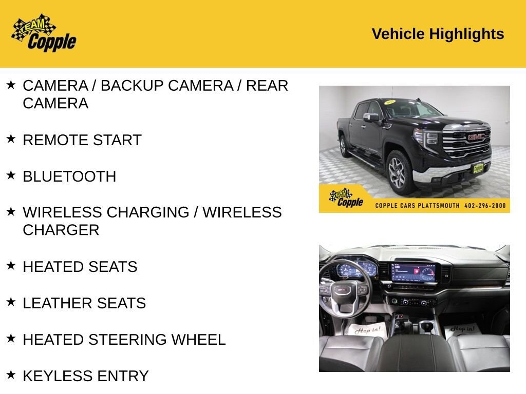 Priced below KBB Fair Purchase Price! 2023 GMC Sierra 1500 SLT EcoTec3 6.2L V8 4WD 10-Speed AutomaticRecent Arrival!CAMERA / BACKUP CAMERA / REAR CAMERA, REMOTE START, BLUETOOTH, WIRELESS CHARGING / WIRELESS CHARGER, HEATED SEATS, LEATHER SEATS, HEATED STEERING WHEEL, KEYLESS ENTRY, PUSH BUTTON START, CARPLAY / APPLE CARPLAY / CAR PLAY, ANDROID / ANDROID AUTO, WIFI / HOTSPOT / WI-FI, USB, ADAPTIVE CRUISE CONTROL / ADAPTIVE CRUISE / ACC, REAR SENSORS, RUNNING BOARDS, XM / SIRIUS / SIRIUSXM, TOW PACKAGE, 4X4 / AWD /4WD, COLLISION AVOIDANCE.THIS VEHICLE COMES WITH THE FOLLOWING FEATURES AND OPTIONS : ** High Capacity Suspension Package, Preferred Equipment Group 4SA (120-Volt Bed Mounted Power Outlet, 120-Volt Instrument Panel Power Outlet, 170 Amp Alternator, 2 Charge/Data USB Ports, 2 Type-C Charge-Only Rear USB Ports, 6-Speaker Audio System Feature, Auto-Locking Rear Differential, Auxiliary External Transmission Oil Cooler, Chrome Header & Chrome Grille Insert Bars, Color-Keyed Carpeting Floor Covering, Compass, Deep-Tinted Glass, Electric Rear-Window Defogger, Electrical Steering Column Lock, Front Frame-Mounted Black Recovery Hooks, Front Rainsensing Wipers, GMC Connected Access Capable, HD Rear Vision Camera, Keyless Open & Start, LED Cargo Area Lighting, Manual Tilt-Wheel & Telescoping Steering Column, OnStar & GMC Connected Services Capable, Perimeter Lighting, Power Door Locks, Power Front Passenger Windows w/Express Up/Down, Power Front Windows w/Driver Express Up/Down, Power Rear Windows w/Express Down, Push Button Start, Rear Wheelhouse Liners, Remote Vehicle Starter System, SiriusXM w/360L, Steering Wheel Audio Controls, Theft Deterrent System (Unauthorized Entry), Wi-Fi Hotspot Capable, and Wireless Phone Projection), SLT Convenience Package (2 Charge/Data USB Ports Inside Center Console, Electronic Precision Shift, Floor-Mounted Center Console, Front Bucket Seats, Power Rake & Telescoping Steering Column, Premium Bose 7-Speaker Sound System, Ventilated Driver & Front Passenger Seats, and Wireless Charging), SLT Preferred Package (Adaptive Cruise Control, Heated 2nd Row Outboard Seats, Power Sliding Rear Window w/Rear Defogger, and Universal Home Remote), SLT Premium Package (20 Polished Aluminum Wheels and Chrome Wheel To Wheel Assist Steps), Standard Suspension Package, Trailering Package (Hitch Guidance), X31 Off-Road Package (Dual Exhaust System, Heavy-Duty Air Filter, Hill Descent Control, Off-Road Suspension, and X31 Hard Badge), 10-Way Power Driver Seat Adjuster w/Lumbar, 10-Way Power Passenger Seat Adjuster w/Lumbar, 3.23 Rear Axle Ratio, 4-Wheel Disc Brakes, 6 Speakers, ABS brakes, Air Conditioning, Alloy wheels, AM/FM radio, Apple CarPlay/Android Auto, Auto High-beam Headlights, Auto-dimming door mirrors, Auto-dimming Rear-View mirror, Automatic Emergency Braking, Automatic temperature control, Brake assist, Buckle to Drive, Bumpers: chrome, Delay-off headlights, Driver door bin, Driver Memory, Driver vanity mirror, Dual front impact airbags, Dual front side impact airbags, Electronic Stability Control, Emergency communication system: OnStar and GMC connected services capable, Following Distance Indicator, Forward Collision Alert, Front 40/20/40 Split-Bench Seat, Front anti-roll bar, Front Center Armrest w/Storage, Front dual zone A/C, Front fog lights, Front Pedestrian Braking, Front reading lights, Front wheel independent suspension, Fully automatic headlights, Heated door mirrors, Heated Driver & Front Outboard Passenger Seating, Heated front seats, Heated steering wheel, Illuminated entry, IntelliBeam Automatic High Beam On/Off, Lane Keep Assist w/Lane Departure Warning, Low tire pressure warning, Memory seat, Navigation System, Not Equipped w/Steering Column Lock, Occupant sensing airbag, Outside temperature display, Overhead airbag, Overhead console, Panic alarm, Passenger door bin, Passenger vanity mirror, Perf Leather-Appointed Front Outboard Seat Trim, Power door mirrors, Powe