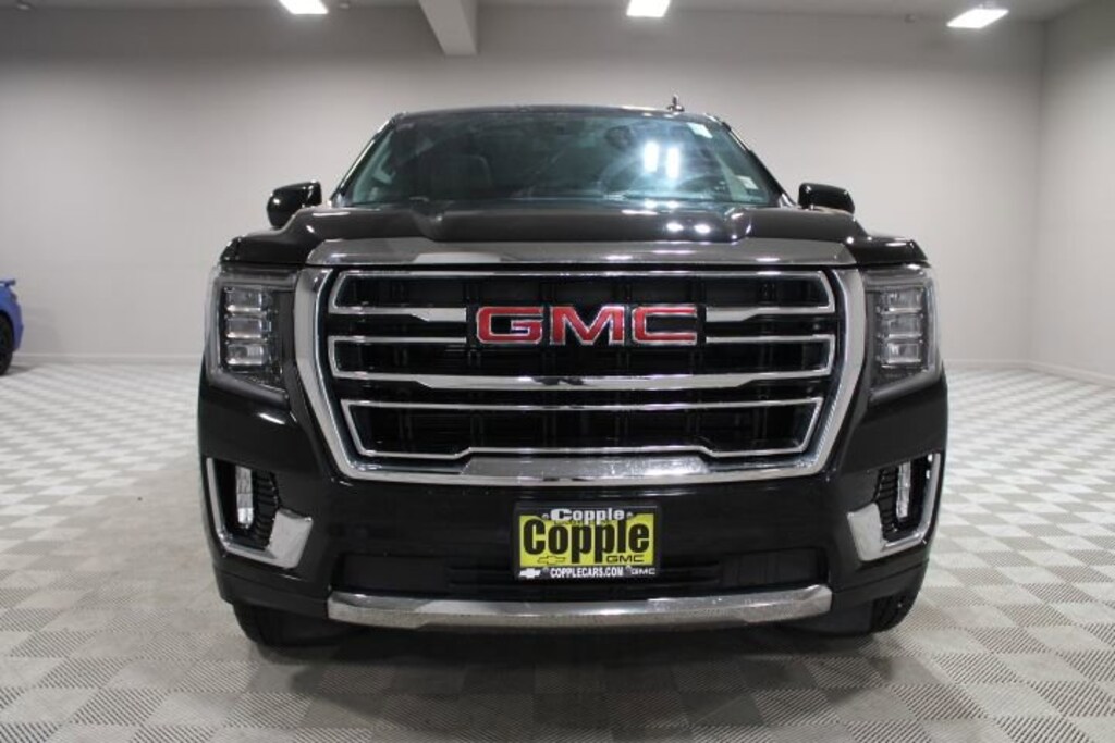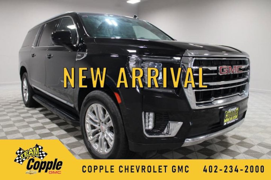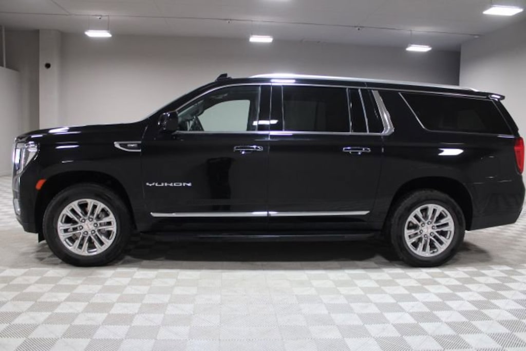 This 2023 GMC Yukon XL SLT 4WD full-size third-row SUV for sale is powered by a 5.3L V8 engine paired with Four-Wheel Drive and a 10-speed automatic transmission, and it features Adaptive Cruise Control, Blind Spot Monitor with Lane Keeping Assist, and a Panoramic Sunroof with Leather Seats. Built for extended capability, it also includes a Tow Hitch with Air Suspension and an integrated Back-Up Camera, while Keyless Start and a Premium Sound System enhance daily driving with connected convenience.