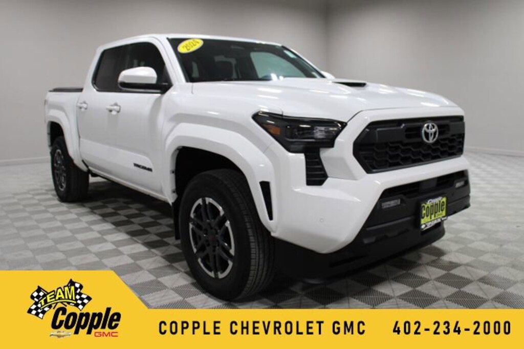This 2024 Toyota Tacoma TRD Sport 4x4 Double Cab is for sale, delivering part-time 4WD capability with Toyota Safety Sense 3.0 including Pre-Collision System, plus wireless Apple CarPlay and Android Auto through the Toyota Audio Multimedia system in a crew cab truck configuration. It also combines trailering capability with a factory tow hitch and integrated trailer brake controller, Blind Spot Monitor with Rear Cross-Traffic Alert for added awareness, and comfort-focused features like a heated leather-trimmed steering wheel.The combination of selectable four-wheel drive, active safety systems, and intuitive smartphone connectivity supports confident driving and everyday usability, while the upgraded interior and trailering equipment enhance control and convenience without adding complexity.Features & Equipment: Part-time 4WD system with 2-speed electronically controlled transfer case i-FORCE 2.4L turbocharged engine with 8-speed automatic transmission Toyota Safety Sense 3.0 with Pre-Collision System Blind Spot Monitor with Rear Cross-Traffic Alert Integrated Trailer Brake Controller and factory tow hitch receiver 8-way power-adjustable front seats with driver lumbar support Heated leather-trimmed steering wheel 8-inch Toyota Audio Multimedia system with wireless Apple CarPlay and Android Auto JBL Premium Audio system with FLEX portable speakerHigh-Value Packages & Equipment:TRD Sport Upgrade Package Adds power-adjustable front seats, heated leather-trimmed steering wheel, JBL Premium Audio with FLEX portable speaker, integrated trailer brake controller, AC power inverter, pre-wired auxiliary switches, and a power horizontal rear window, which enhances comfort, connectivity, and trailering control.We proudly serve drivers throughout Louisville, Omaha, Lincoln and surrounding Nebraska and Iowa communities. Whether youre commuting in the city or cruising country roads, its worth the trip to experience why Copple has been a trusted dealer in Nebraska for more than 50 years!