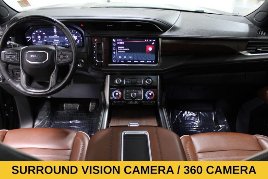 2023 GMC Yukon Denali Ultimate 4WD full-size SUV for sale with a 6.2L EcoTec3 V8 engine, 4WD capability with air ride adaptive suspension and Magnetic Ride Control, and Enhanced Automatic Emergency Braking with Forward Collision Alert, paired with a 10.2-inch touchscreen with Google built-in and wireless Apple CarPlay and Android Auto. This Yukon Denali Ultimate 4WD combines V8 power with trailering support including hitch guidance with hitch view, adds safety with HD Surround Vision and Trailer Side Blind Zone Alert, and features an 18-speaker Bose Performance Series audio system with wireless charging and head-up display. Built as a full-size three-row SUV, it also integrates adaptive cruise control and enhanced automatic parking assist, along with heated and ventilated front seats with massage and a panoramic power sunroof.